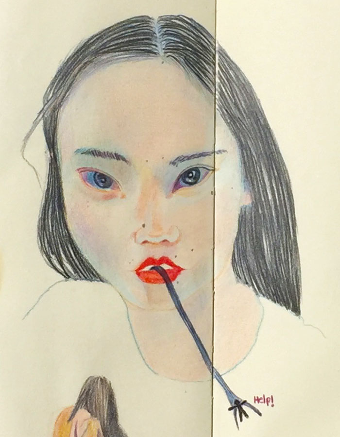 Ilustración con lápices de colores Dim 40cm x 29cm Sobre papel